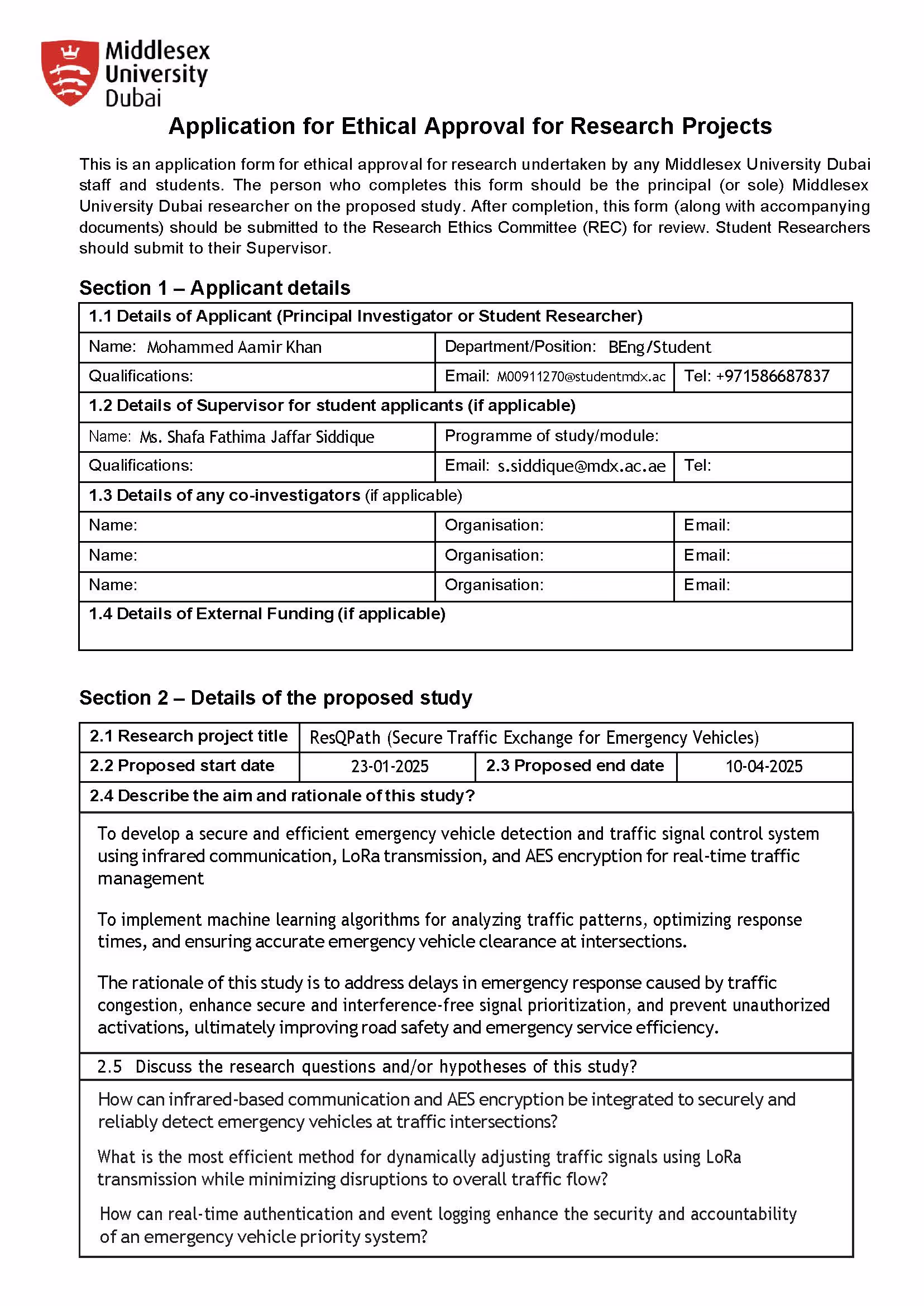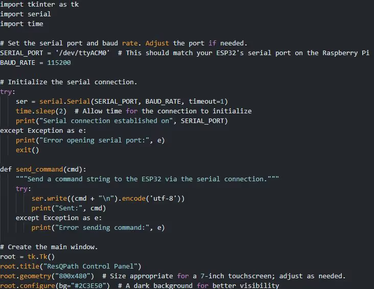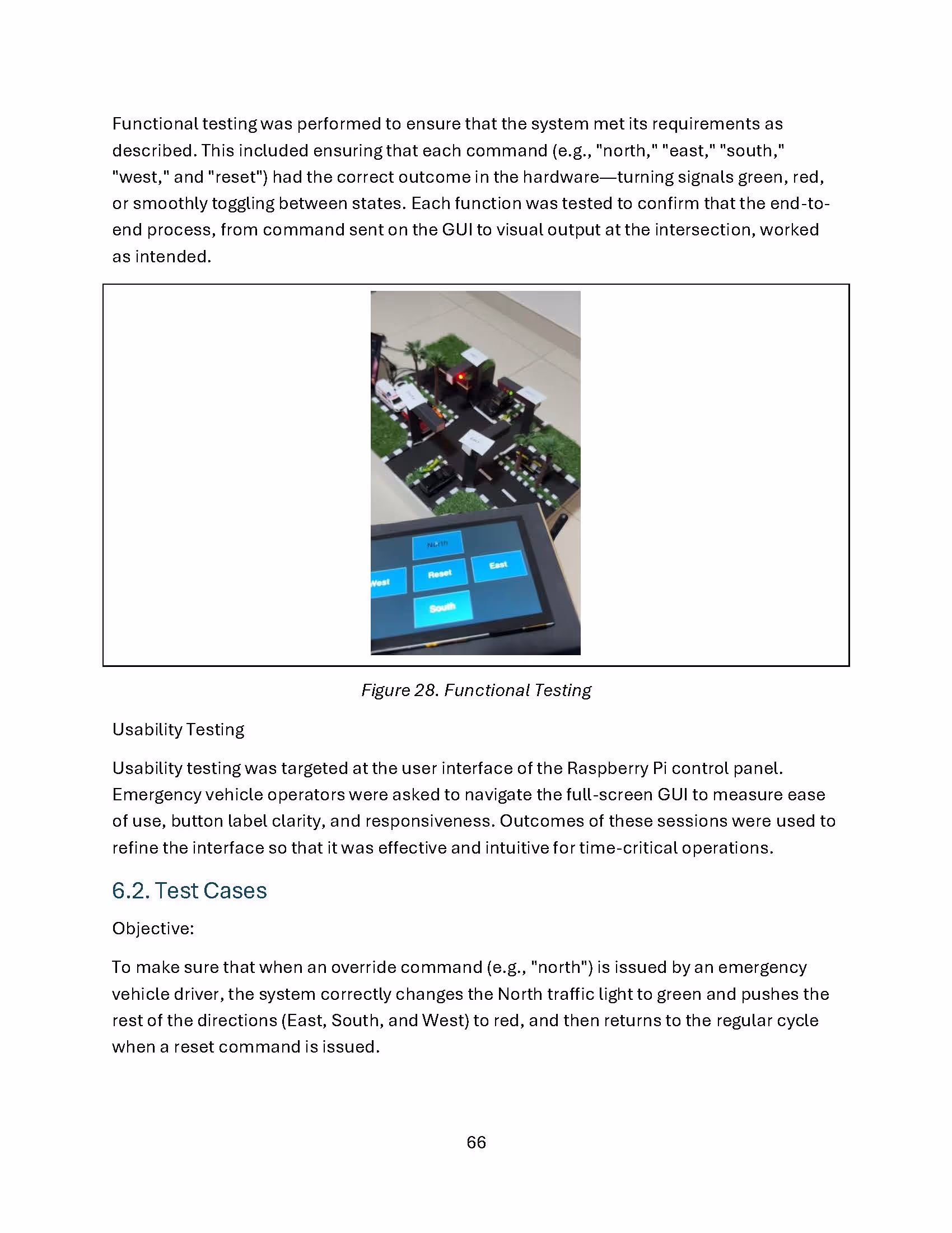 The project also features a user-friendly control interface built on a Raspberry Pi 4 with a 7-inch touchscreen. This interface, developed using Python and Tkinter, allows emergency personnel to easily send override and reset commands, as well as monitor the system’s status in real time. Through rigorous testing and iterative development, ResQPath has evolved into a robust prototype that not only meets its functional requirements but also offers ample potential for future enhancements and broader deployment.